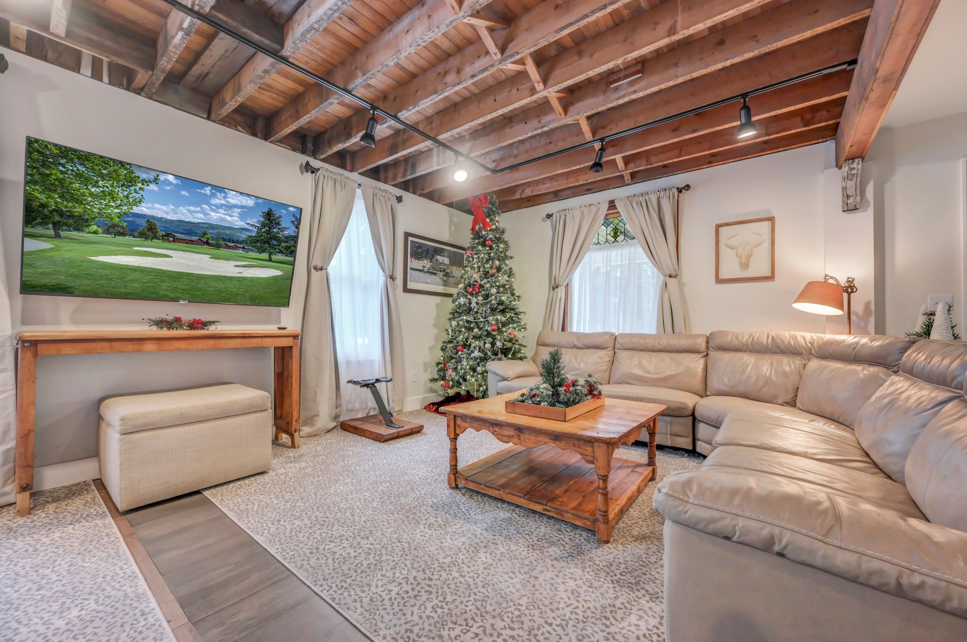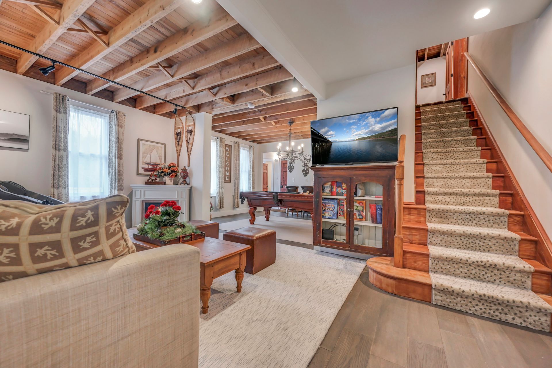 Inside, you will find a bright and modern layout with seating for 16 in the dining area, smart TVs in every bedroom, a pool table, central air conditioning and a brand new heating system. The property offers plenty of room to spread out, with a firepit area and peaceful natural surroundings to enjoy year-round.